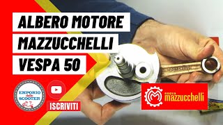 Gli alberi motore MAZZUCCHELLI per Vespa sono tra i più conosciuti nel mondo Vespistico. Il continuo aggiornamento tecnico e professionale, hanno portato oggi questa azienda ad affermarsi con autorevolezza nel campo della meccanica di precisione, forte non solo di una decennale esperienza ma anche di una struttura flessibile e dinamica. Mazzucchelli si pone così come punto di riferimento all’avanguardia nella produzione di alberi motore e bielle. L'albero motore è uno dei componenti sottoposti a maggior stress sul motore e nel caso di rottura la moto si ferma e può provocare danni anche irreparabili al motore. Pertanto consigliamo in fase di revisione del motore a non trascurare questo componente. L'albero motore standard montato su Vespa 50 N - 50 L (Lusso) - 50 Revival - 50 R (Rinnovata) Vespa 50 3 marce - 50 4 marce - 50 Special - PK (50 PK - 50 PK S - 50 PK XL) - Ape 50 ha corsa 43mm con biella da 87mm e va benissimo montato anche con cilindri 75cc 80cc 85cc 90cc 100cc 102cc 112cc 115cc in vendita delle varie marche presenti sul mercato. Il cono, che è la parte dove si innesta il volano cambia in base ad alcuni modelli di Vespa e può essere da 19mm o 20mm. Diciamo che tutti i modelli di Vespa e Ape 50cc dagli anni 60 agli anni 80 montano il cono da 19mm mentre dagli anni 80 in poi con l'arrivo delle versioni Vespa PK e APE con accensione elettronica e non più a puntine il cono del volano è stato portato a 20mm. Un rapido controllo se non si dispone di un calibro per eseguire la misura, è verificare la misura del paraolio lato volano, infatti se cono 19mm misura 19x32x7 e se cono 20mm 20x32x7.