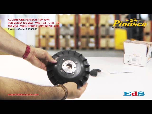 Variable Ignition System 12V 90W The FLYTECH variable ignition system by PINASCO is the result of a long research and development process aimed at delivering a high-quality, reliable and long-lasting product. The PINASCO FLYTECH fly wheel, made with different weights for all models Vespa VNB - GT - LML - COSA - SPRINT - PX. The weights of the flywheels are 1.6 kg and 1.8 kg.