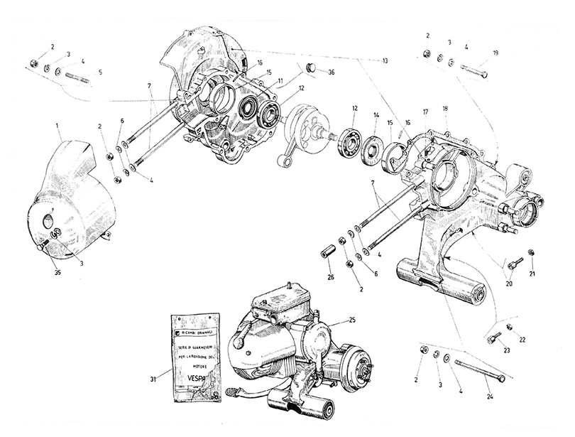 Esplosi parti di ricambio per Vespa 125 VNB - GT - GTR - TS / 150 VBA - VBB - GL - SPRINT - SPRINT VELOCE