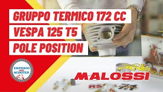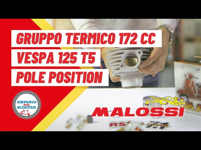 Questo cilindro in alluminio di Malossi da 65mm di diametro con una cilindrata di 172cc è intercambiabile a quello originale montato su Vespa 125 T5 Pole Position.